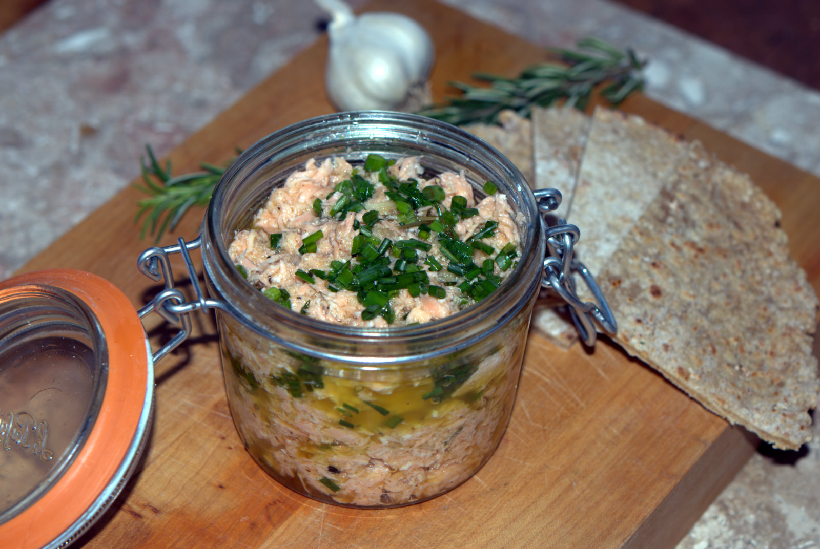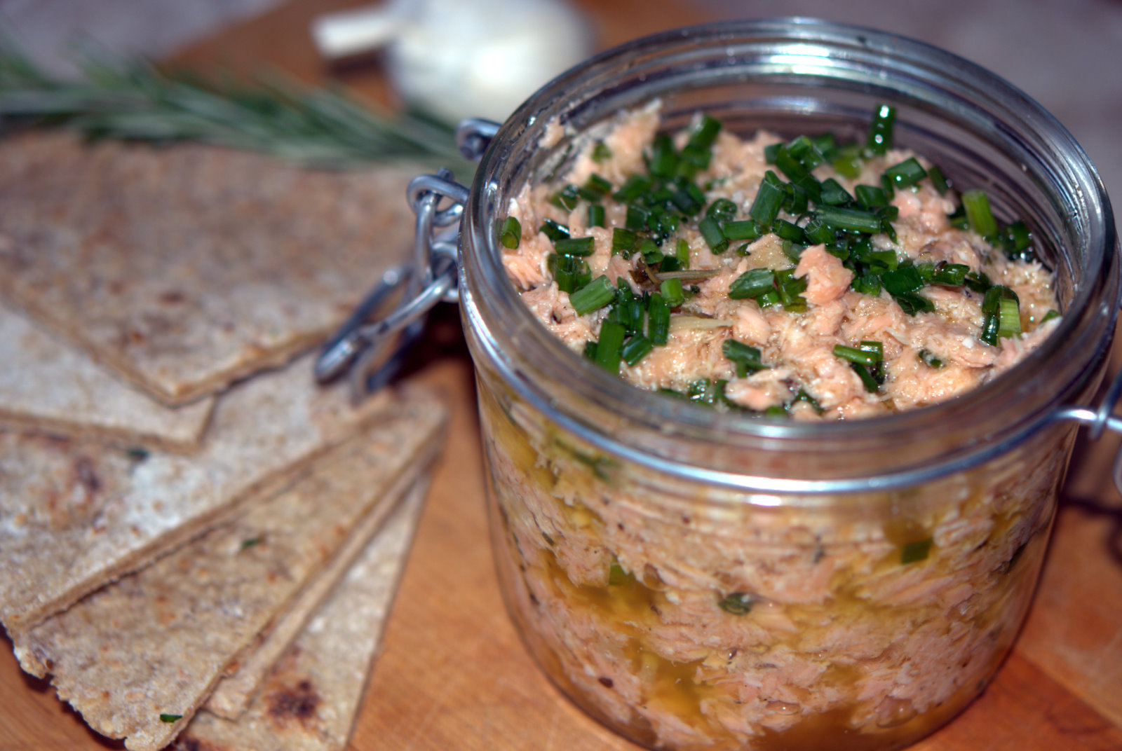 To accompany the tortillas, I prepared an olive oil-poached salmon salad. Kind of like a very elegant tuna salad, with salmon standing in for the tuna. This was inspired by an olive oil-poached Spanish bonito tuna with roasted garlic, fresh bay, and dried chili dish I recently had at Avec (love, love, love this place). Unfortunately, I was not able to find fresh bonito, but wanted to substitute another oily fish, so I used wild salmon (sockeye, coho, or king) instead. I stay far away from farm-raised salmon all together. Farm raised salmon in the United States contains the highest level of polychlorinated biphenyls (PCBs) in the food supply system, and 16 times more PCBs than wild salmon. Wild salmon that feed on a natural diet rich in krill, shrimp and other fish have so much more flavor than corn-fed, farm-raised salmon, which is typically (artificially) colored with added synthetic pigments
