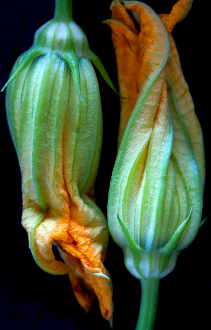 Love all sorts of edible flowers, squash blossoms included. Have seen squash blossoms at the farmers’ market the past few weeks, but am always hesitant to buy them since they have such a short shelf life. You really need to use them within a day or two. This squash blossom soup was one of my earlier posts. The only change I’ve made to the original recipe was to increase the quantity of vegetables; mostly, because I just love summer vegetables — tomatoes, corn, squash…
