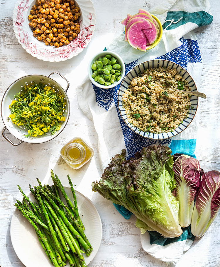 Asparagus, fava beans, watermelon radish, treviso radicchio, red leaf lettuce, za’atar roasted chickpeas, Israeli couscous, and, these little, yellow flowers, the culprit, all went into today’s salad. An array of all my favorite spring vegetables.  It’s what I love about spring.  This time of year I’m craving foods that are a bit lighter and more refreshing than heavier winter fare.  Foods that energize, rather than big bowls of comfort.  I love throwing together ginormous salads, tossing in whatever’s in season.
