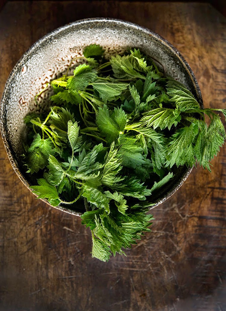 8 ounces of nettles, blanched, remove tough stems and discard